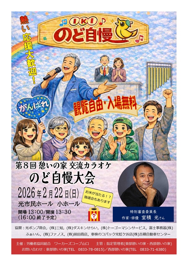 特別審査委員長は作家・俳優の室積光さん!詳しくは東部憩いの家